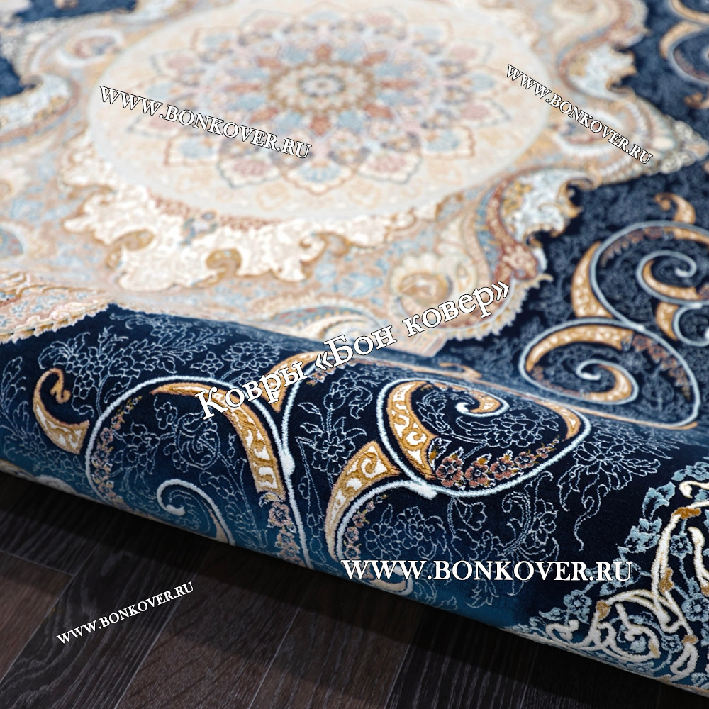 Долго искали смотрели на разных сайтах , в итоге ваш ковер приглянулся больше всего . Доставили в рулоне на следующий день , оплатили при получении . Идеальный вариант , цвет темно синий с переливом - рисунок очень выйгрышно смотрится !